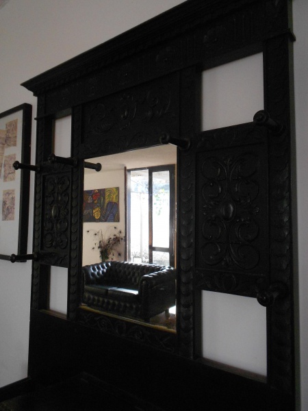 • Chapeleira antiga entalhada a mão, feita em madeira escura.