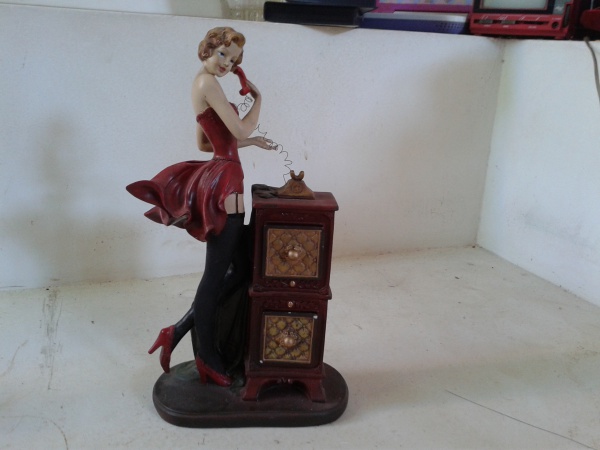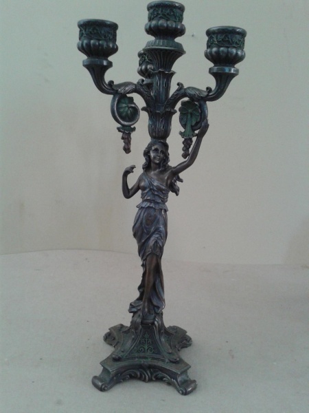• Candelabro , para 4 velas, feito em resina com banho em bronze, representando uma figura feminnina.