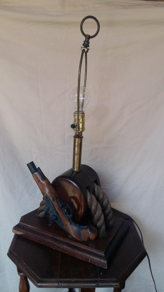 • Abajour , feito em madeira torneada, dec. 50, cupula em tecido.