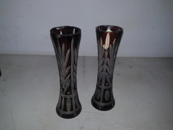 • Par de Vasos Trabalhado, Par de vasos trabalhado na cor vinho