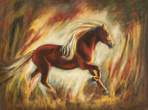 • Cecília Cunha, Cavalo, Acrílico sobre Tela, 75 x 100, datado em 2012, assinatura no canto inferior direito.