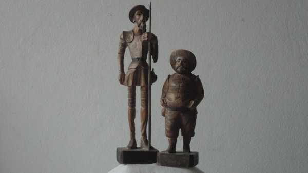 • Dom Quixote e Sancho Pança, `Dom Quixote e Sancho Pança`, escultura de madeira entalhada a mão.