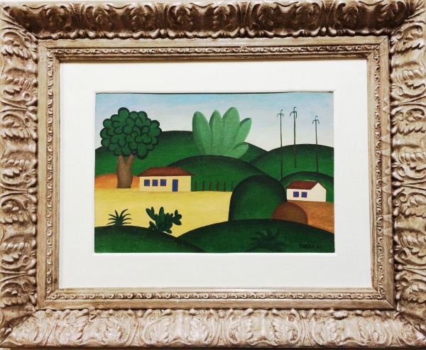 • Tarsila do Amaral, Paisagem, Óleo Sobre Cartão, 27 x 40, assinatura no canto inferior direito.