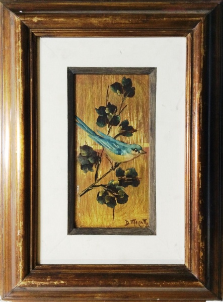 • Dario Mecatti, `Passaro`, Óleo Sobre Madeira, 25 x 13, assinatura no canto inferior direito.