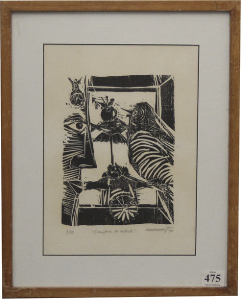 • Rapoport, `O Enigma do Ciclista`, Xilografia, 30 x 22, assinatura no canto inferior direito.