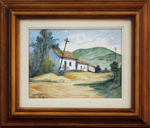 • Alfredo Volpi, `Casario, azulejo produzido pela Ozirart`, Técnica Mista, 15 x 20, assinatura no canto inferior direito.